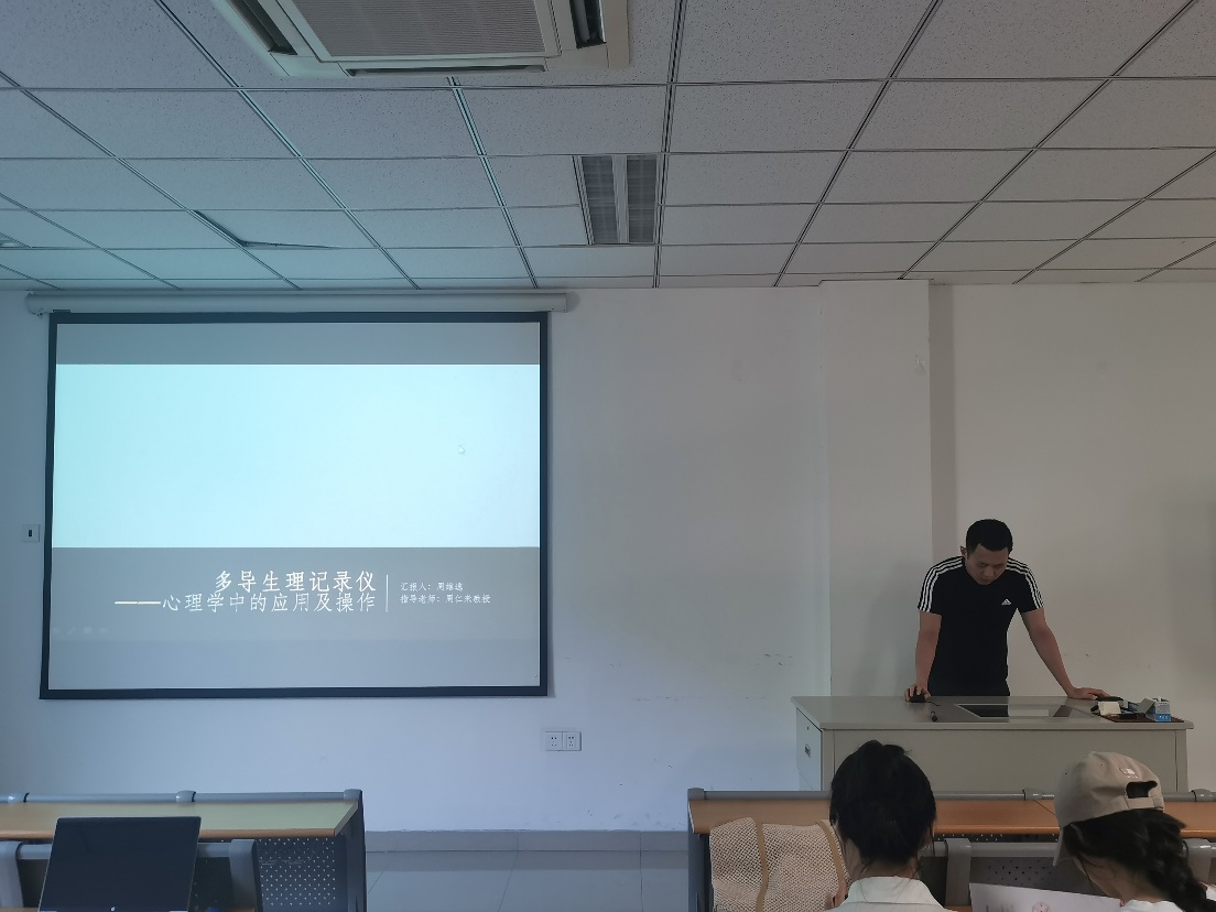 第二部分,李中权老师课题组吴婧轩同学给大家详细介绍了眼动仪的操作使用流程和注意事项,周仁来老师课题组周维逸、龙芳芳同学给大家分享了脑电设备和心电设备的操作和数据分析,让同学们更加直接明了地接触和学习。最后,三位同学针对大家对实验软硬件方面的疑惑进行了一一解答,并针对学院涉及实验要求以及实验方法等工作中存在的问题进行了深入交流探讨。
