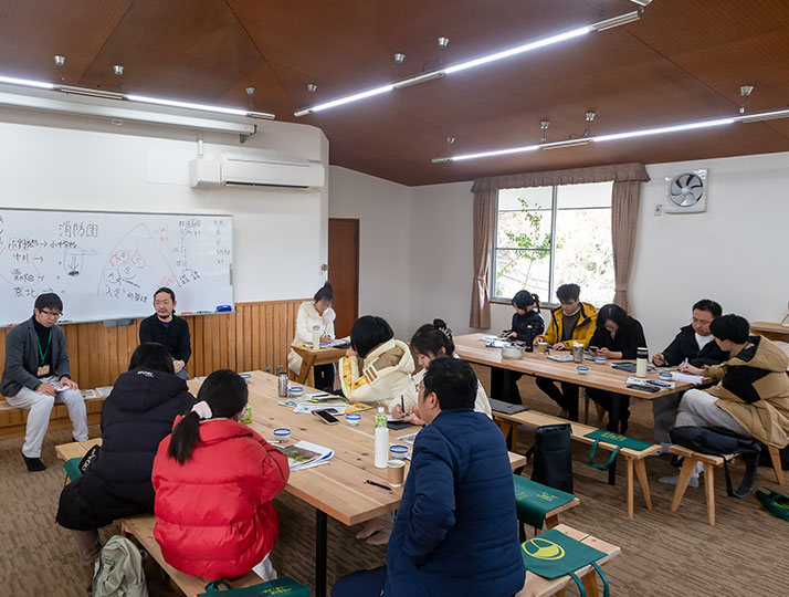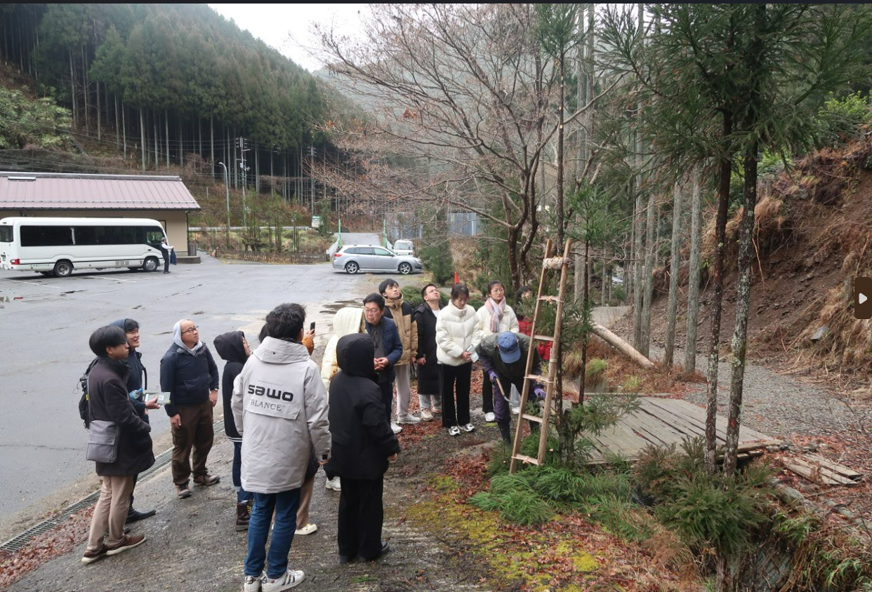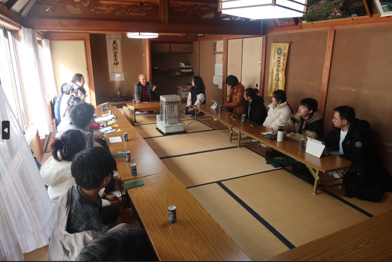 在京都北部山区,我们接触到了作为“新移民”(从城市搬到农村)的奥田先生和阿部朋恒老师(立命馆大学)。奥田先生为我们详细介绍了京都北部山区的组成部分(小野乡、中川、云田)以及当地面临的人口减少、地区经济发展低迷的难题。其中,北山杉树在京都北部山区的历史发展中扮演着重要的角色。在讲座进行中,南大师生通过向两位“新移民”提问,对北部山区的移民情况和社区共建等有了进一步的认识。