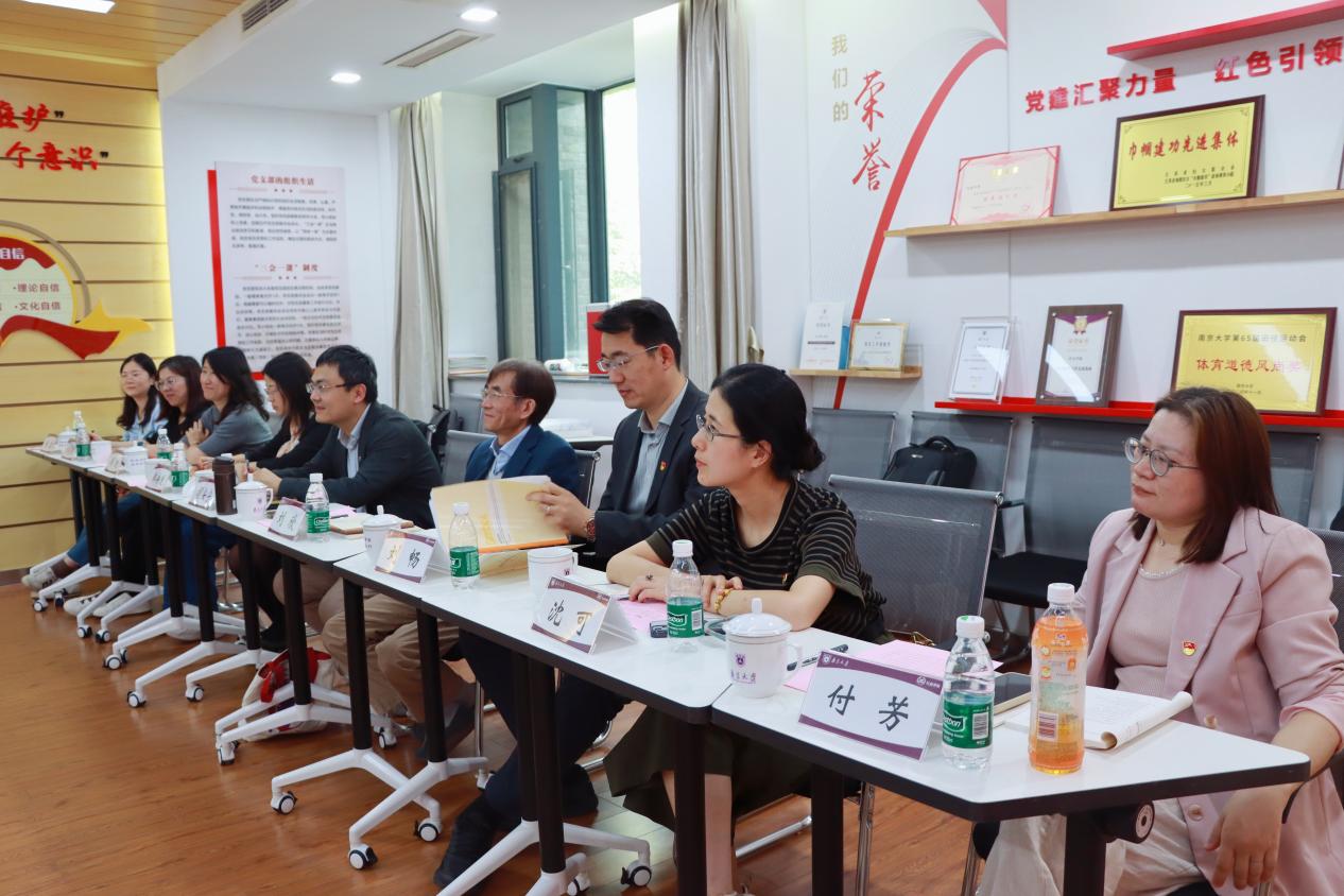 胡安宁、王建富分别介绍学院党委基本情况和相关工作。胡安宁以“双创引领 五位一体 谱立德树人新篇章”为题介绍院党委在党建引领学科建设、推动学院中心工作高质量发展等方面的积极探索与丰硕成果,分享了将党建工作与教学科研、人才培养深度融合的特色做法。王建富介绍了院党委在基层党组织建设、以“百舸项目”“红帆·学生党建工作站”为代表的党建品牌塑造、党建引领服务社会等方面的实践做法。双方在交流中互学互鉴,为党建工作创新拓宽思路。