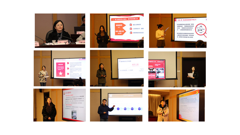 行政教工党支部书记陈露、社会学系教师党支部书记胡小武、心理学系教师党支部书记李岩松、社会工作与社会政策系教师党支部书记田蓉,分别对本年度支部党建工作进行总结回顾,查摆问题,发现不足,并提出今后努力方向。各位书记一致认为,教师党支部党建工作应紧密结合专业特点,发挥自身优势,开展更有成效、更有意义的党建工作。作为教工党支部书记述职评议人,吴愈晓充分肯定了各位党支部书记的努力,建议各党支部要进一步增强全体党员同志参与支部党建工作的责任感,提升参与度,不断提高党建工作专业性,为学生成长和青年教师发展提供更多能量。