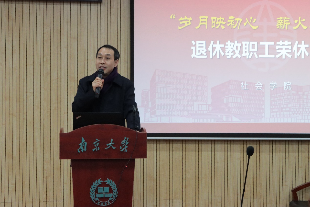 原院长成伯清,范可、彭华民、贺晓星、汪和建、徐愫等特邀荣休教师和学院在校教职工参加大会。会议由院长、党委副书记吴愈晓主持。